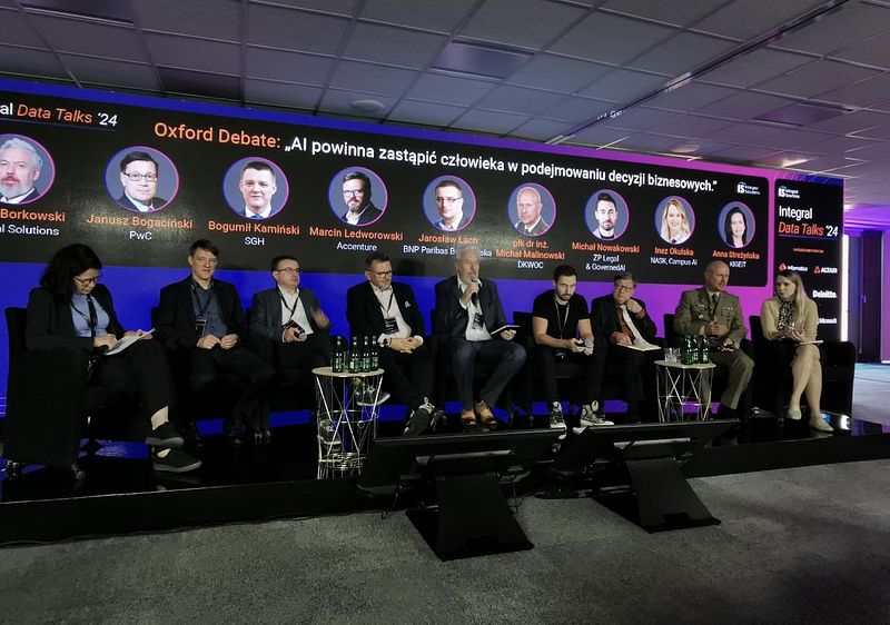 Debata Oxfordzka na temat: "Czy AI powinna zastąpić człowieka w podejmowaniu decyzji biznesowych?". Wspólnie z Anna Streżyńska , Inez Okulska, PhD , Janusz Bogaciński, Bogumił Kamiński, Marcin Ledworowski, Jarosław Łach oraz Pawel Borkowski.