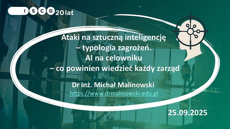 Prezentacja systematyzuje krajobraz zagrożeń wobec systemów AI wzdłuż całego łańcucha przetwarzania: danych wejściowych, zbiorów treningowych, modelu, algorytmów/integracji oraz warstwy wynikowej. Autor omawia m.in. ataki adwersarialne, omijanie modeli, prompt injection (w tym warianty pośrednie i ukryte w multimodalnych danych), „sykofancję” jako wektor manipulacji, zatrucie danych treningowych, eksfiltrację i inferencję członkostwa, inwersję modelu, ataki bocznokanałowe oraz ryzyka wynikające z niebezpiecznej konstrukcji wtyczek/API i autonomicznych agentów (AT-CPP). Ilustruje je współczesnymi incydentami i demonstracjami (np. ataki skalujące obraz, audio-injection, „model namespace reuse”) oraz analogiami operacyjnymi, akcentując, że „stare” błędy infrastrukturalne nadal eskalują skutki nowych wektorów ataku. Część defensywna porządkuje praktyki zarządzania ryzykiem wg OWASP Top-10 (LLM/ML), MITRE ATLAS i NIST AI RMF, wskazuje środki techniczne (sandboxing narzędzi, allowlisty domen, pinning i podpisy artefaktów, klasyfikację post-hoc, detekcję OOD, firewall’e dla LLM, rozwiązania krajowe) oraz znaczenie red teamingu i audytów bezpieczeństwa. Wskazano także konsekwencje nadchodzących technologii (komputery kwantowe) i możliwe kierunki odporności kryptograficznej. Wnioski adresowane do zarządów podkreślają konieczność: ustanowienia ładu AI (governance), wdrożenia wielowarstwowej obrony (people-process-tech), ciągłego testowania odporności i szybkiej ścieżki aktualizacji zabezpieczeń w całym cyklu życia modeli