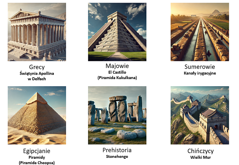 Wielki Mur Chiński (budowa od 700 p.n.e.): Ten monumentalny system obronny, choć z pozoru nie związany bezpośrednio z obliczeniami, wykorzystuje skomplikowaną geometrię oraz precyzyjne planowanie przestrzenne. Mur nie tylko służył jako struktura obronna, ale także jako narzędzie do monitorowania terenów, gdzie precyzyjne mierzenie odległości i przestrzeni było kluczowe, co możemy uznać za analogiczne do współczesnych obliczeń na wielką skalę.