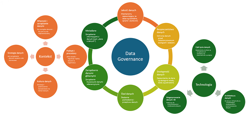 Kontekst, w którym organizacja zarządza danymi, determinuje skuteczność strategii Data Governance. Obejmuje on: