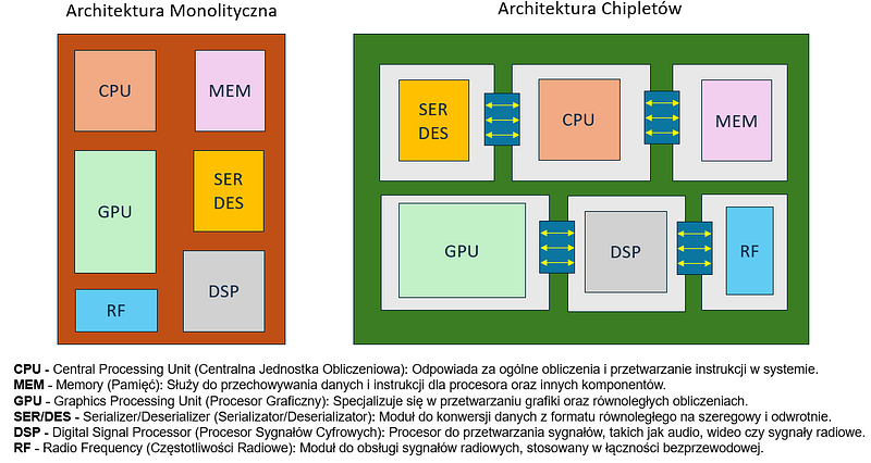 Dominacja w HPC i AI: Dzięki wysokiej elastyczności chiplety staną się standardem w systemach wymagających dużej wydajności.