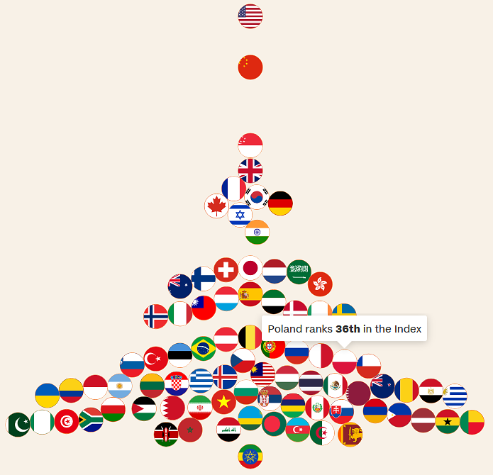 Global AI Index ocenia kraje pod kątem ich zdolności w obszarze sztucznej inteligencji na podstawie trzech głównych kategorii: