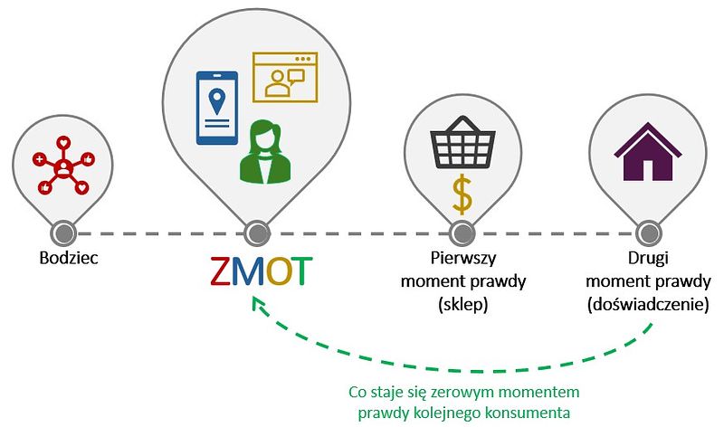 ZMOT (Zero Moment of Truth) jest nowym, wcześniejszym etapem, w którym klient samodzielnie i proaktywnie szuka informacji, zanim jeszcze zdecyduje się na zakup lub wybór produktu.